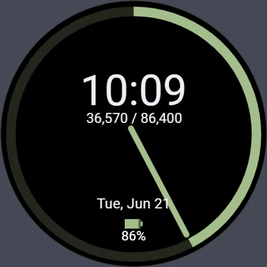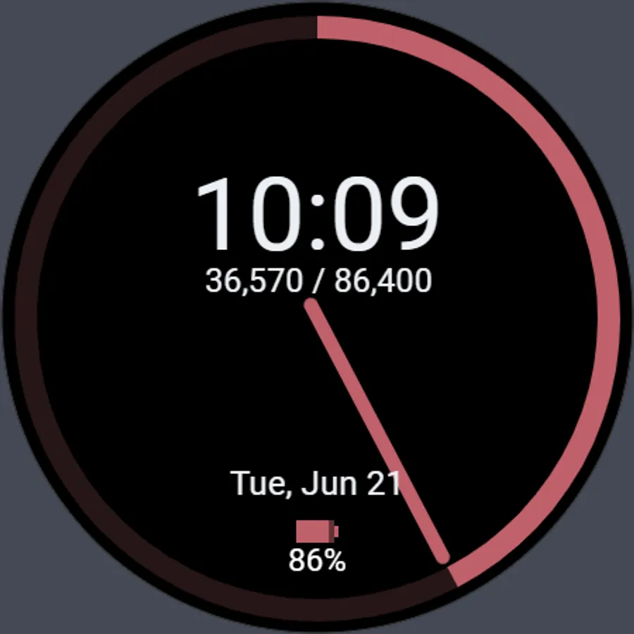 The main hand circles once a day to show your progress through the day.