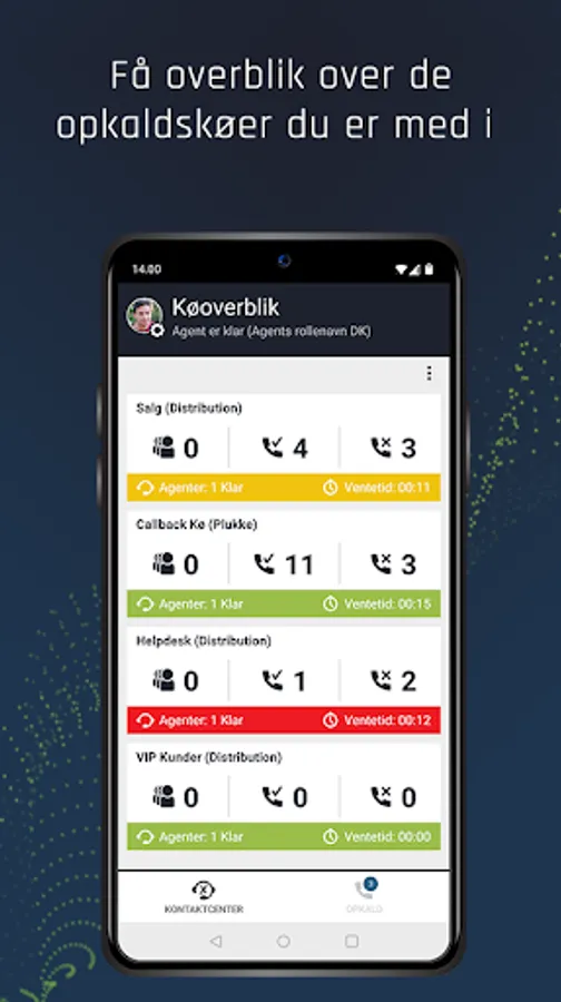 • get a queue overview and see information about the telephone queues you participate in. You can see the number of agents logged in; how many calls are waiting; how long the average queue time is and how many calls there are, respectively. are treated and untreated.