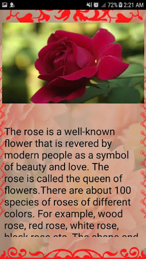 Flowers is a beautiful creation of God. Almost all of us love flowers. Some of us have a great curiosity about flowers. This app will tell you some interesting information about some flowers.