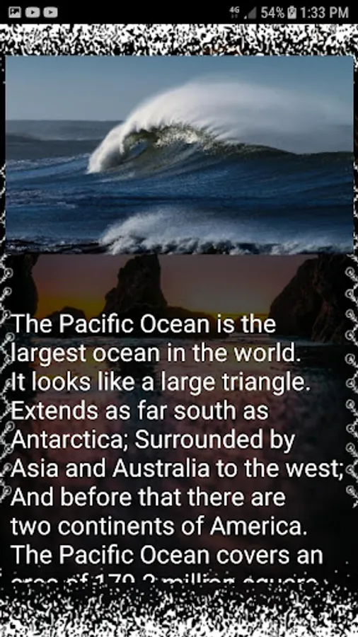 There are 5 oceans in the world . The oceans are always a mystery to the people.Almost all of us would like to know about the oceans. This app will give you some basic information about the 5 oceans of the world.Hope this will increase your knowledge level.