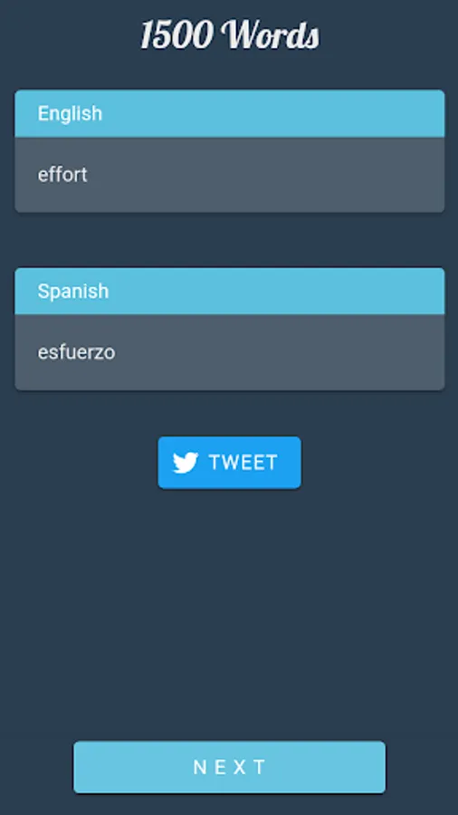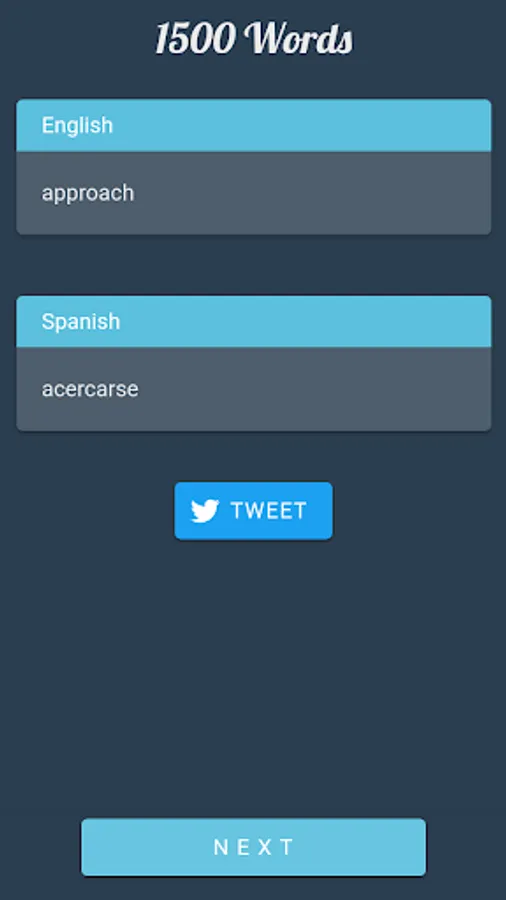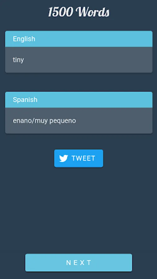Learn the 1500 most common and frequently used words in English and its translation to Spanish. Either if you want to start to learn English or Spanish this app will teach you the basic vocabulary used in a daily basis. It will appear on the screen the different words translated in both languages. There are 1500 words that you could learn.