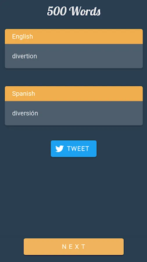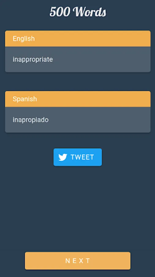 Learn the 500 most common and frequently used words in English and its translation to Spanish. Either if you want to start to learn English or Spanish this app will teach you the basic vocabulary used in a daily basis. It will appear on the screen the different words translated in both languages. There are 500 words that you could learn.