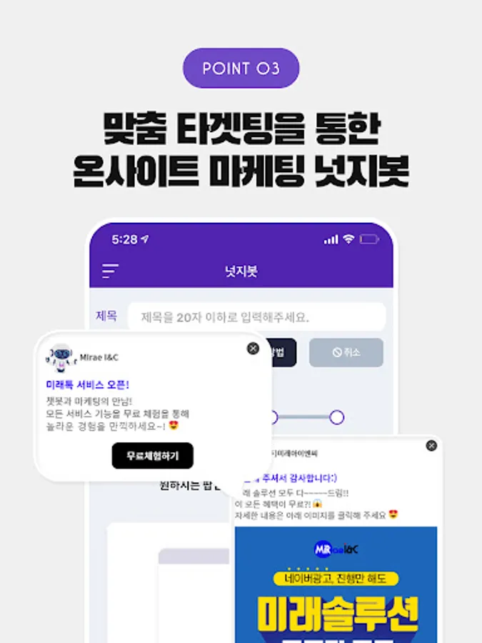 Mirae NC is a self-developed chat application is provided free of charge if the future advertisers.