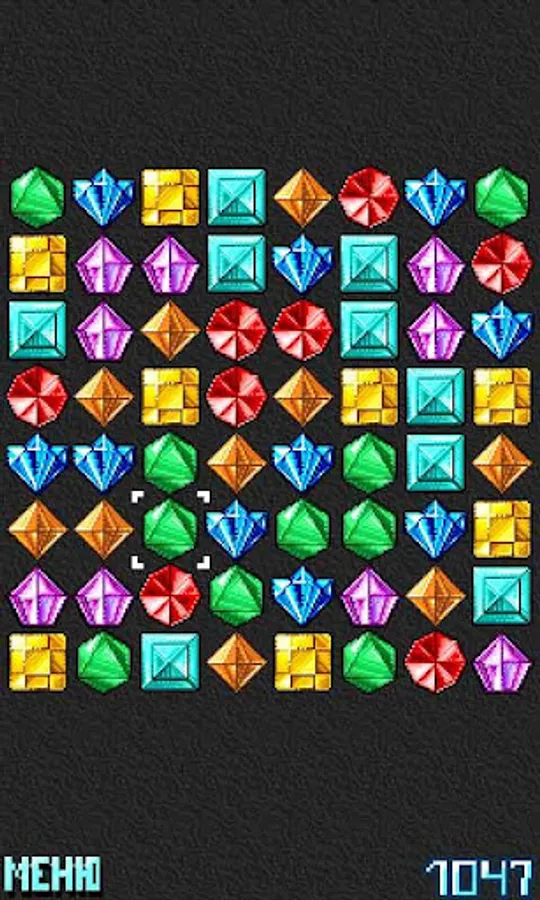 You can pick up crystals only when they make a line of three or more. Swap any two nearby crystals to have biggest possible lines.