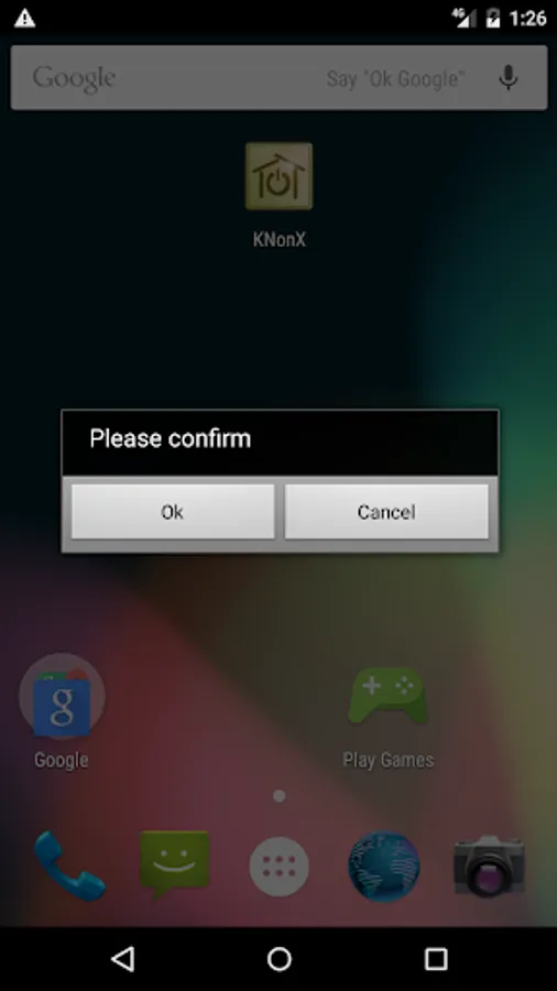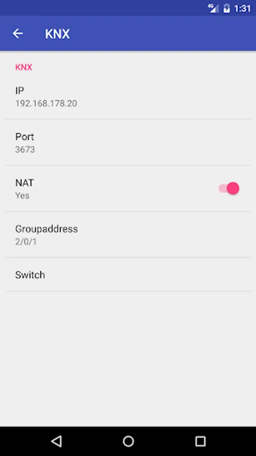 Knonx connects to your KNX installation and sends "on" or "off" to a configured groupaddress. If no interface is found or if the configuration is empty, the settings menu is open where you can configure the groupaddress or the ip-address of the interface, if you have more than one ip-interfaces in your network.