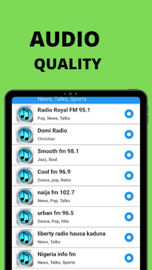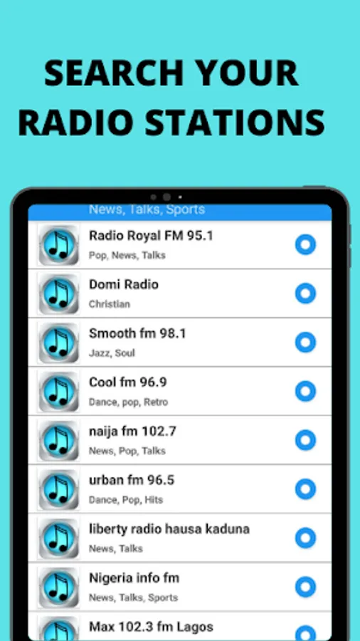 Some radio stations in this app: