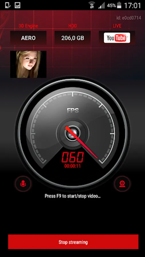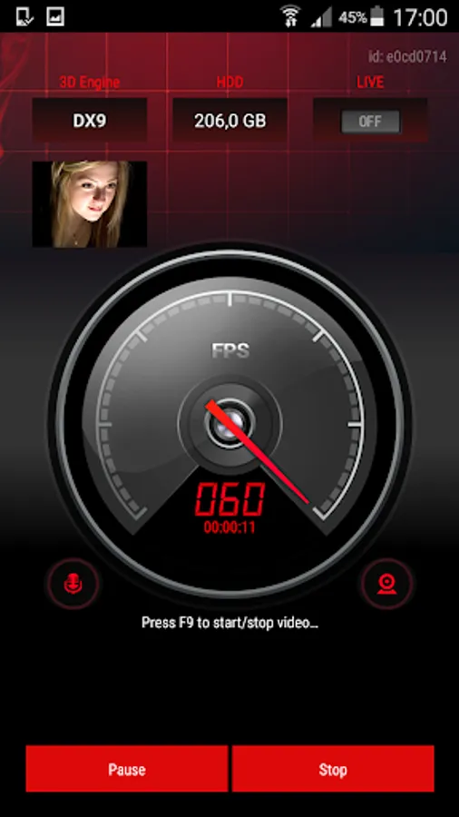 With RCU you can control all basic recording functions of Action!, you can start, stop, pause video recordings and display recorded webcams preview, framerate statistics and video recording time.