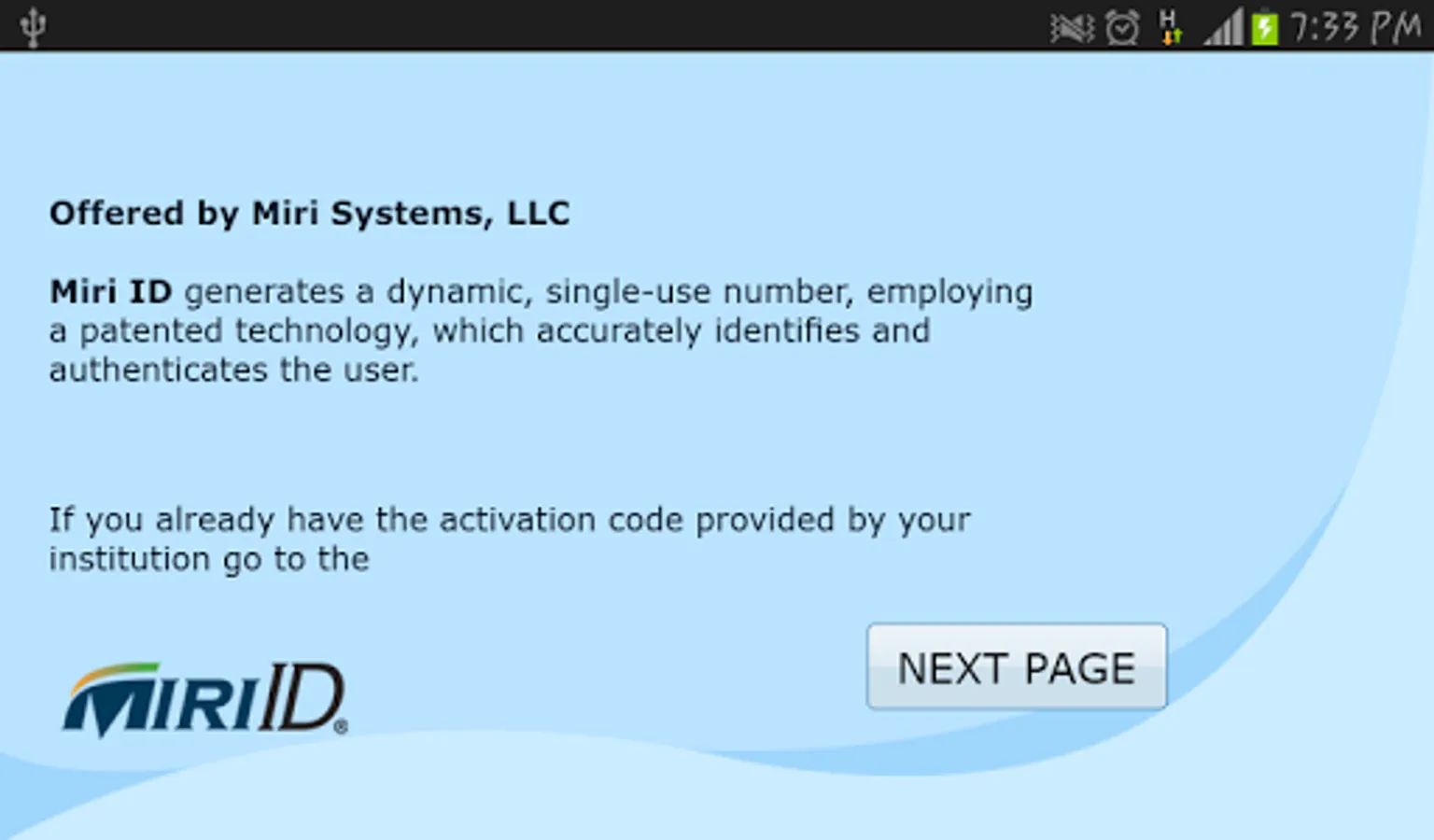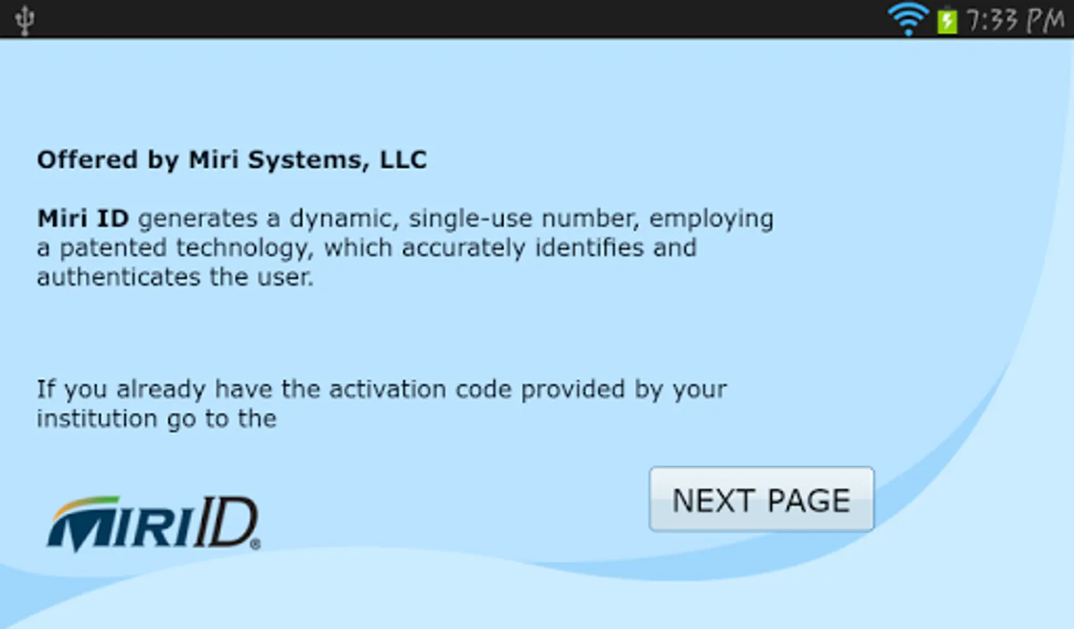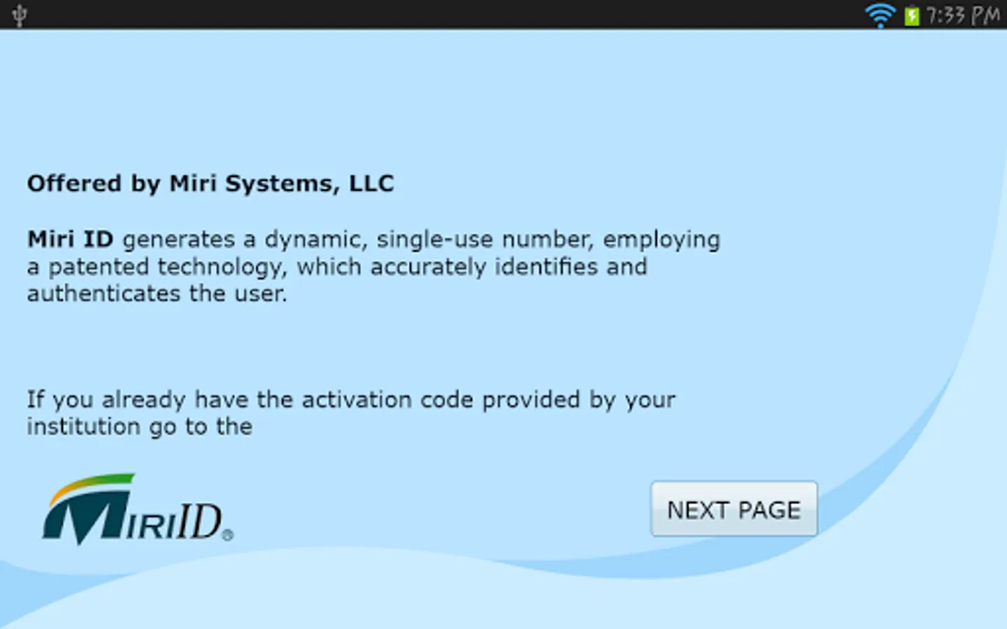 Never before has there been a greater need for identity security. Miri Systems recognized that need and created the MiriID app, which allows users the ability to safely and securely log on to websites without fear of identity theft. The MiriID is offered in collaboration with your Institution, your Institution will send you an activation code to get started.This advanced patented technology, using “dynamic” single-use numbers, renders it virtually impossible to be hacked into, thereby ensuring identity protection and security.