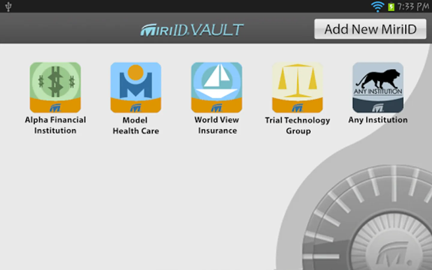 The MiriID Vault allows users the convenience of storing up to eight of their MiriID accounts in one central location.