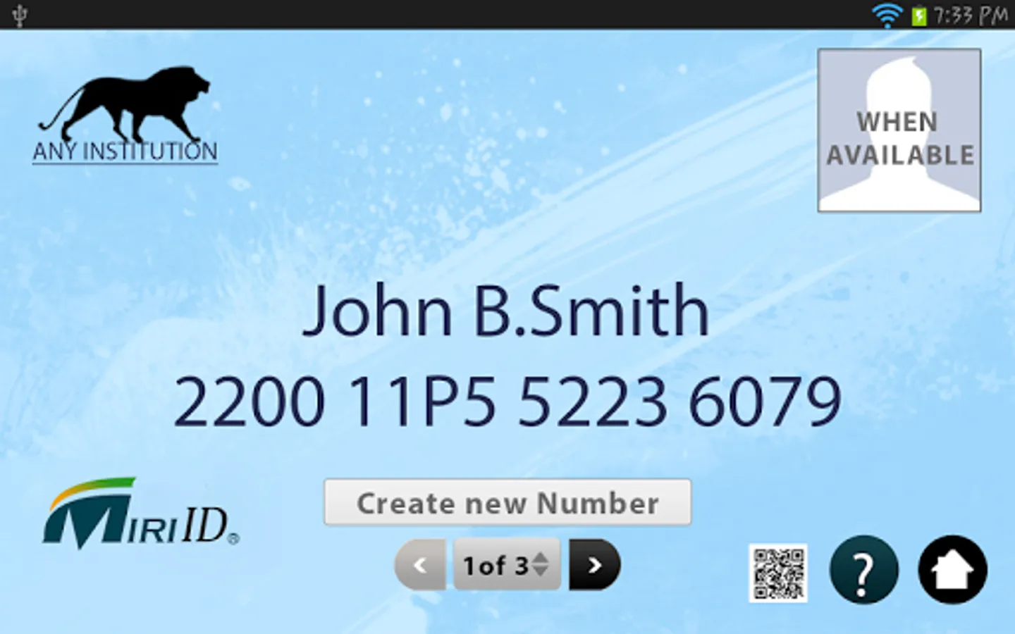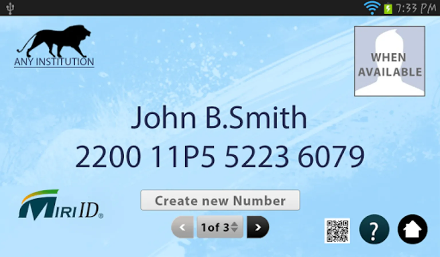 MiriID is an easy-to-use, safe and secure personal identification system that utilizes advanced patented “dynamic” number technology; it positively identifies and verifies the authenticity of the user, ensuring an incomparable level of identity protection and security. The MiriID can be used with any system that requires positive authentication, such as government, healthcare, educational, financial, or other institutions.