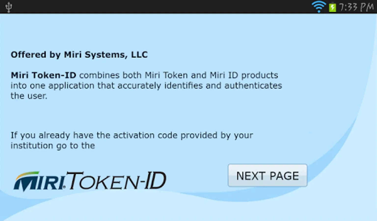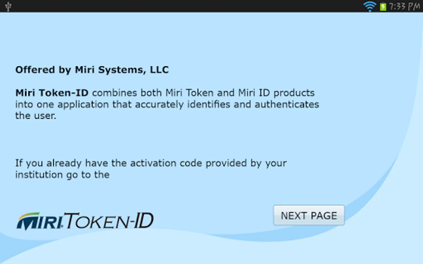 The MiriToken-ID can be used with any system that requires positive identification and authentication, such as government, healthcare, educational, financial, or other institutions. The MiriToken-ID is offered in collaboration with your Institution, your Institution will send you an activation code to get started.