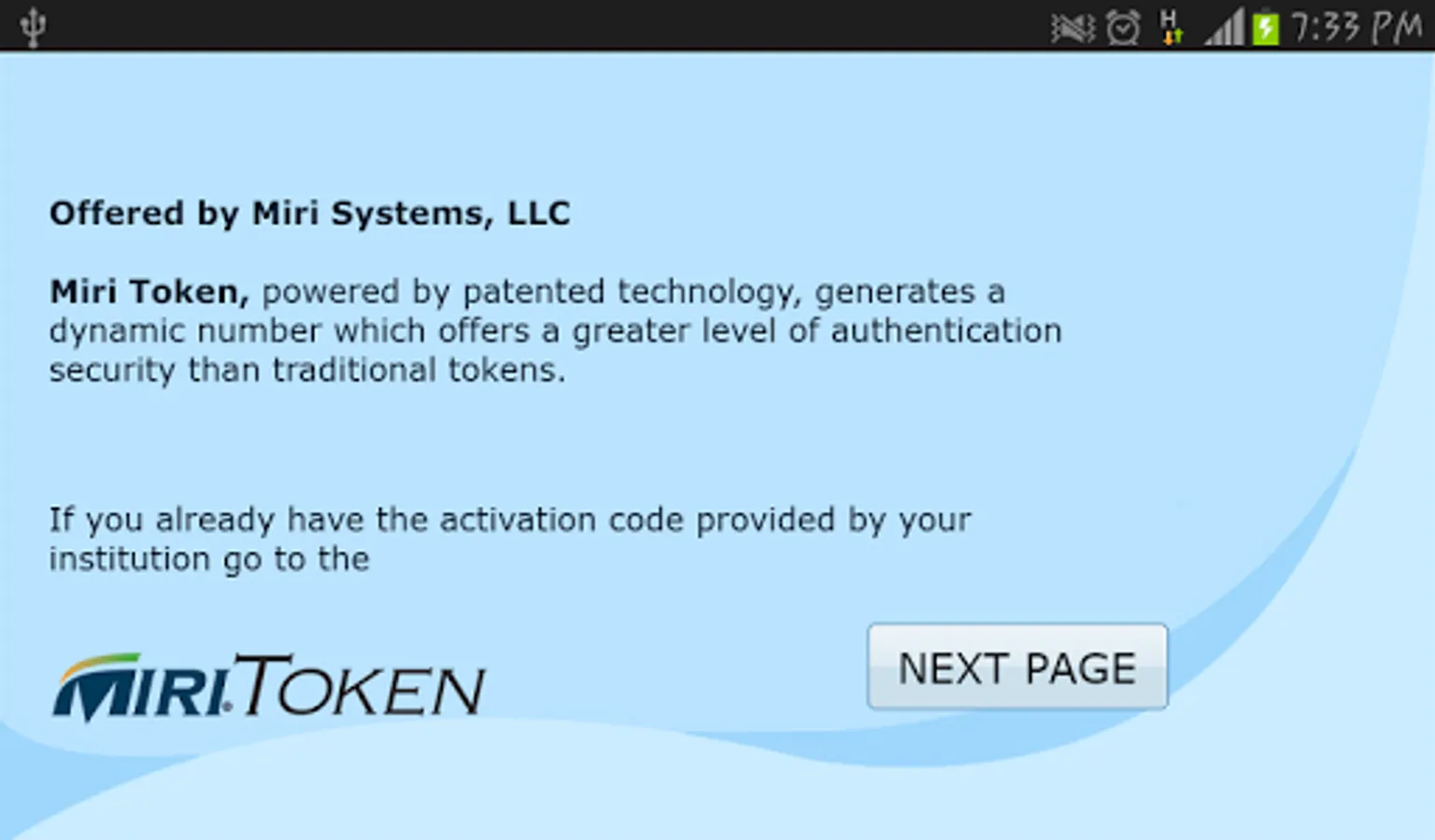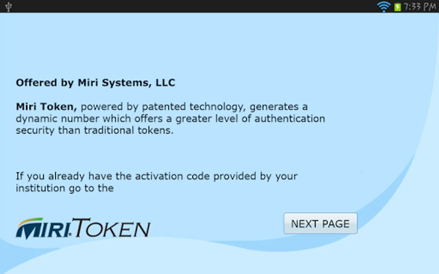 MiriToken can be used by any institution that requires positive authentication, such as government, healthcare, financial, educational and others. The MiriToken is offered in collaboration with your Institution, your Institution will send you an activation code to get started.