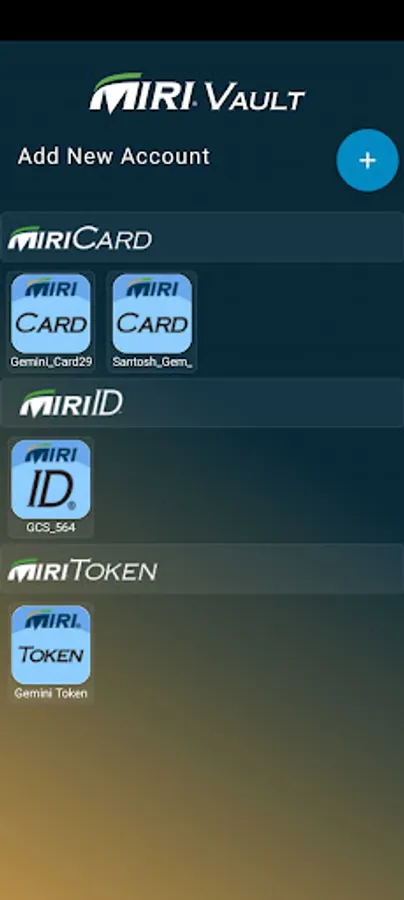 THE MiriVault App provides the capability of storing and utilizing multiple solutions which can be used for various authentication. Presently it has 3 products , the MIRIID, MIRITOKEN & MIRICARD. For each product one can store upto 8 variants of the same and a total of 24 variants in one single app solution.