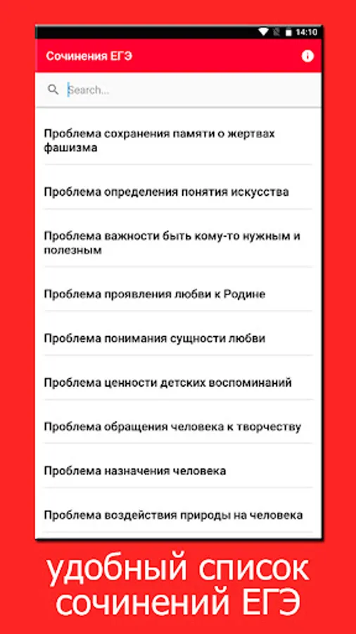 Collection of essays USE 2024 in Russian for exam preparation. Regular updating and adding new relevant essays in the Russian language will allow you to prepare for the USE 2024 in the Russian language. Please don't forget to rate the app.