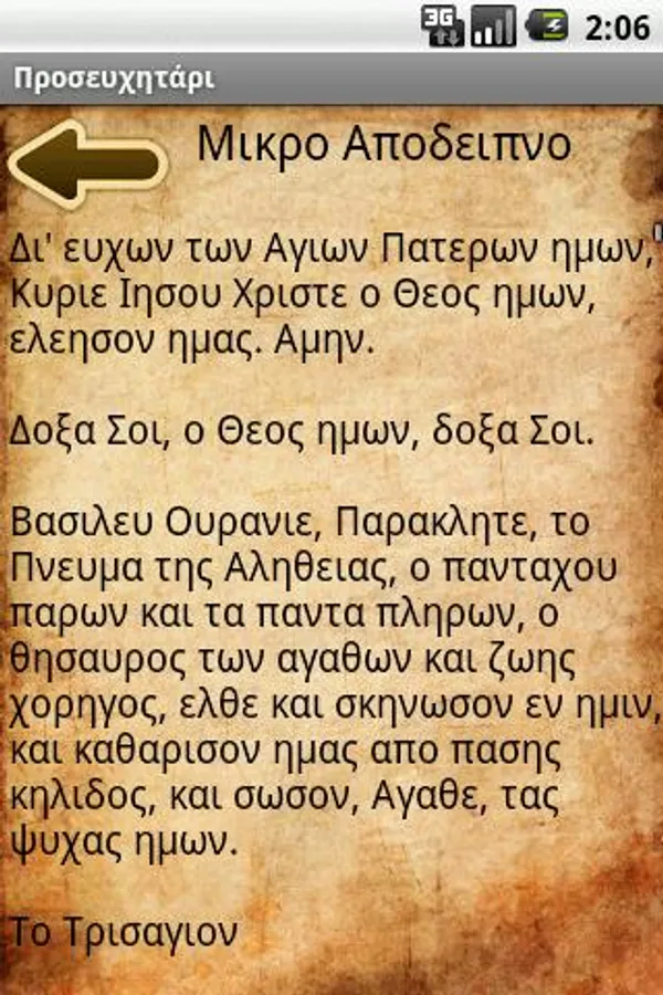 Το Android έχει ένα πρόβλημα με το ελληνικό Polytonic κείμενο, έτσι ώστε τα κείμενα δεν είναι απόλυτα σωστή. Αν κάποιος έχει μια προσευχή που δεν είναι σε Unicode ή ξέρει πώς να λύσει αυτό το πρόβλημα ας μου στείλει e-mail.