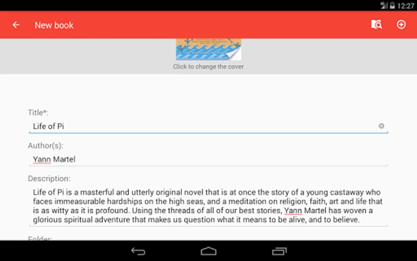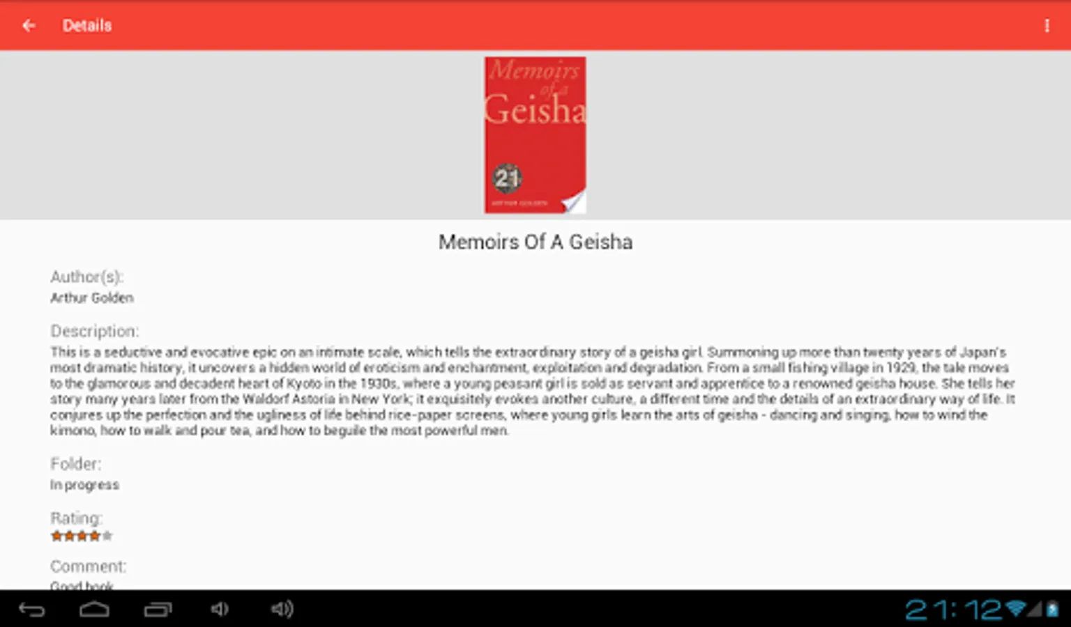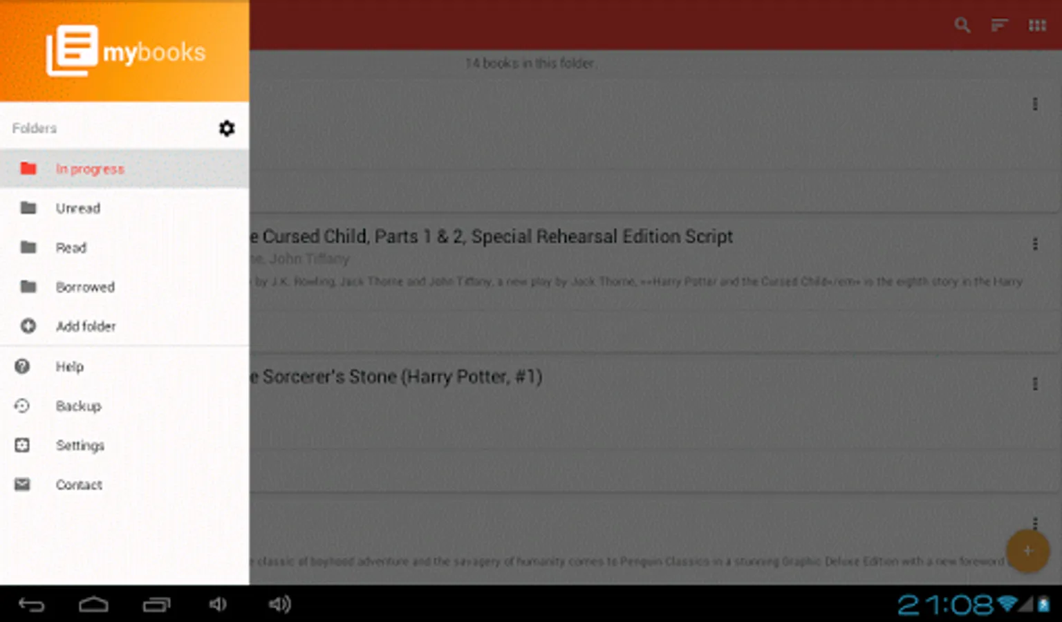 My Books is an application for those who want to keep track of the books read. Like a library, books can be sorted into folders, having read books, unread books or currently reading books.