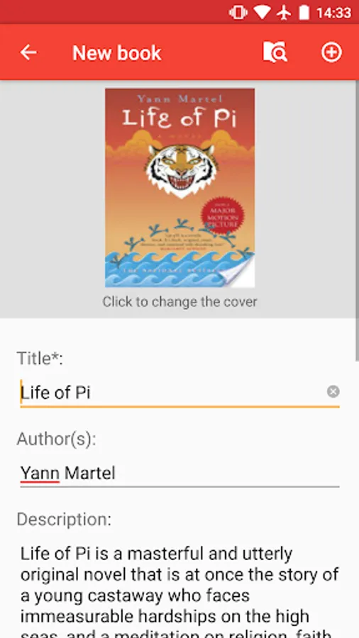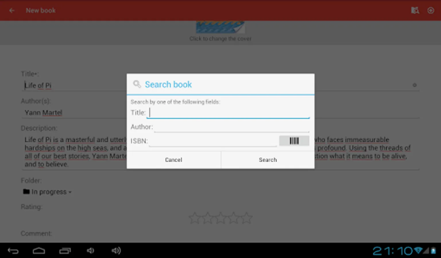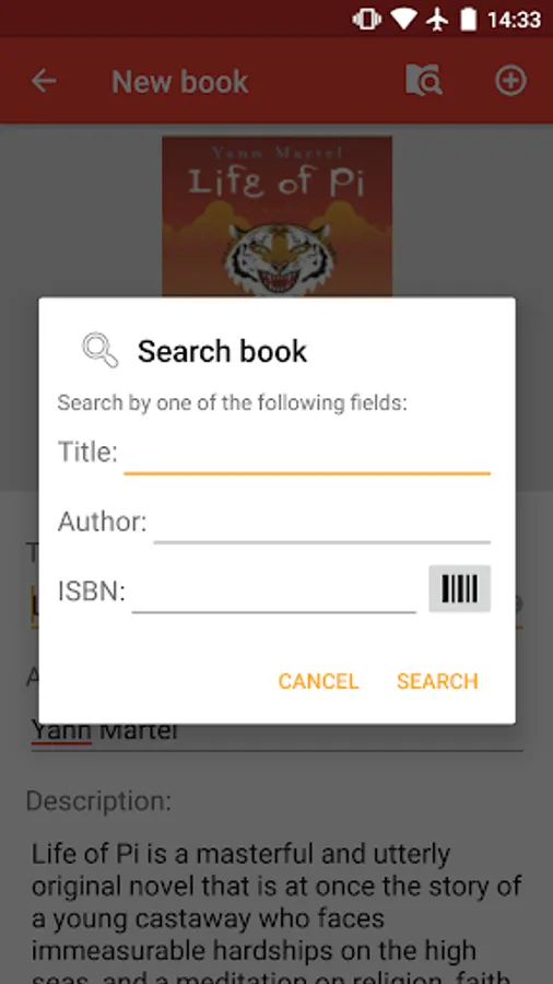 ★ Automatically add new books by searching them on the internet in a large catalog (continue reading), searching by title, author, or by scanning his barcode with your device camera. Does not need external apps or leave the app to perform the search.