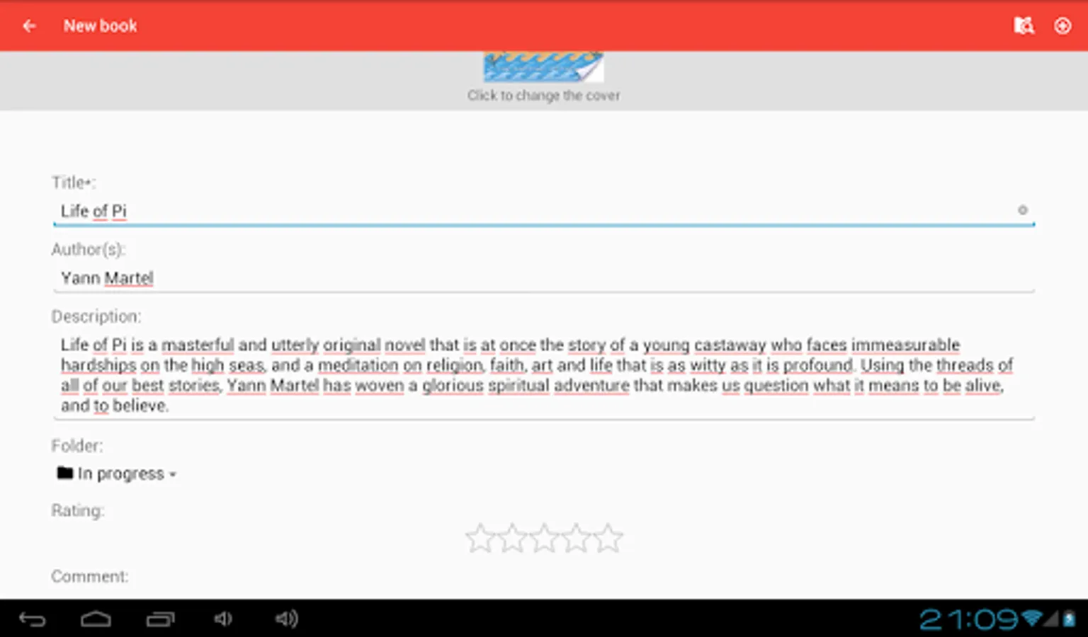 ★ Add all the details of the book as well as a rating and a personal comment.