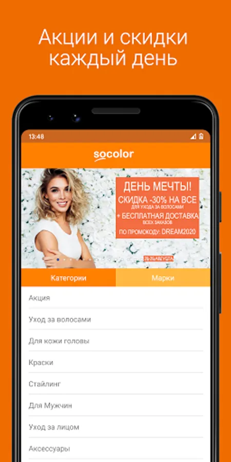 We are pleased to introduce you Socolor application. In it we have tried as much information as necessary for a comfortable shopping experience. You can learn about our new products from the brands for hair cosmetics, spetspredozheniya about and what they can be interesting for you. Share the information with your friends in social networks, and come to us all along. Waiting for you!
