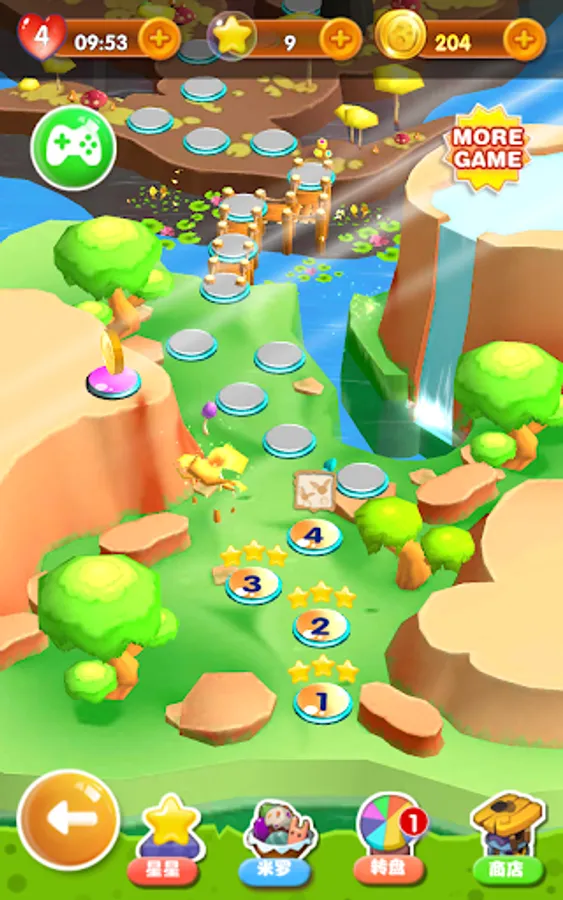 - Collect the fruits, and complete the levels in forest with pet Miro.