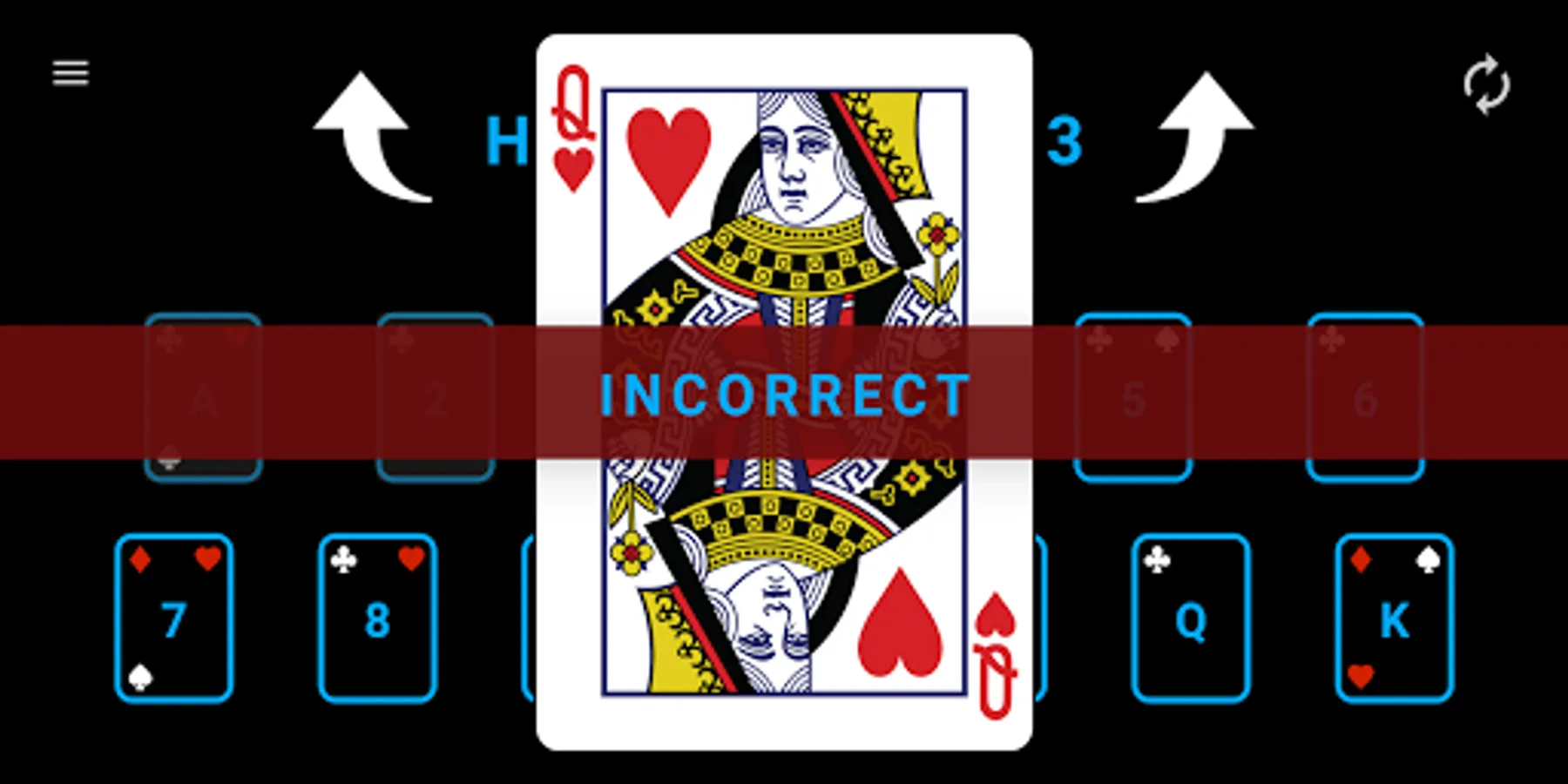 - if they guess incorrectly, they guess again, but are told if the card is lower or higher than their initial guess
