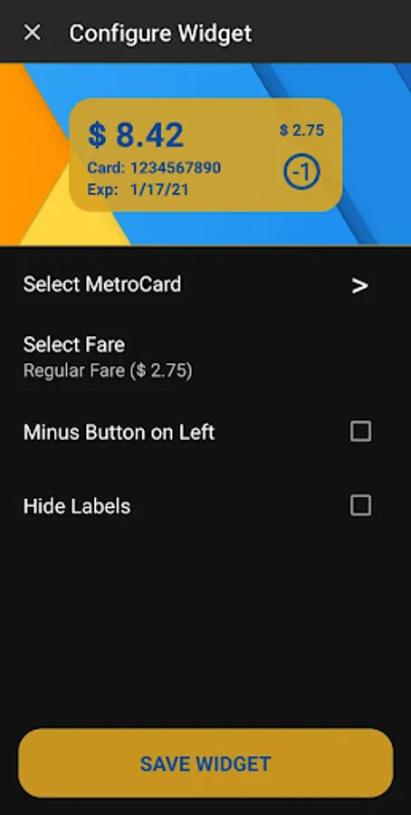 🗸 home screen widgets: reduce the balance of a MetroCard by a single fare with a simple click, without having to open the app