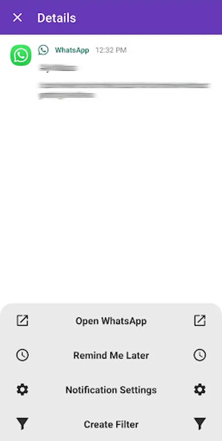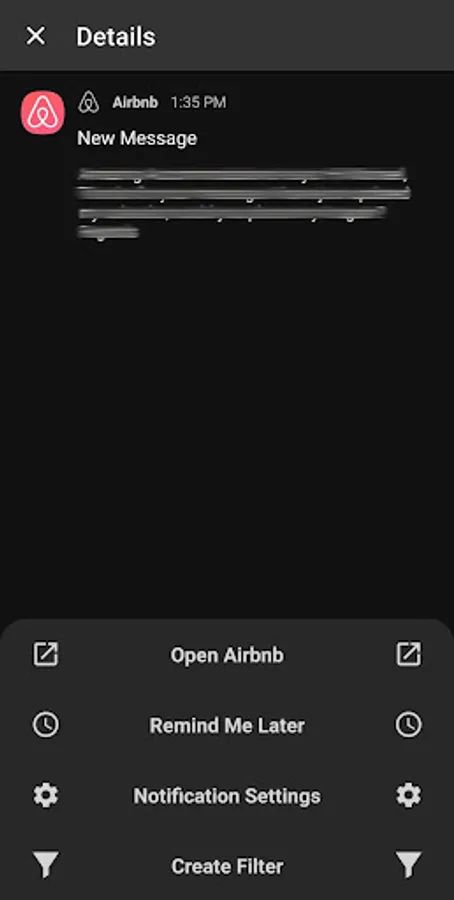 Click on a notification to: open the app, open its notification settings, have it notify you later, or create a filter based on it.
