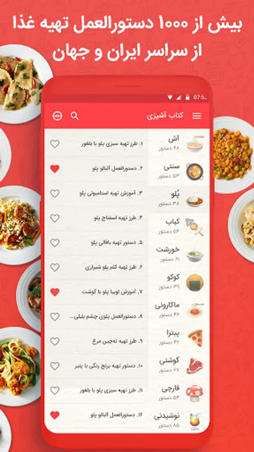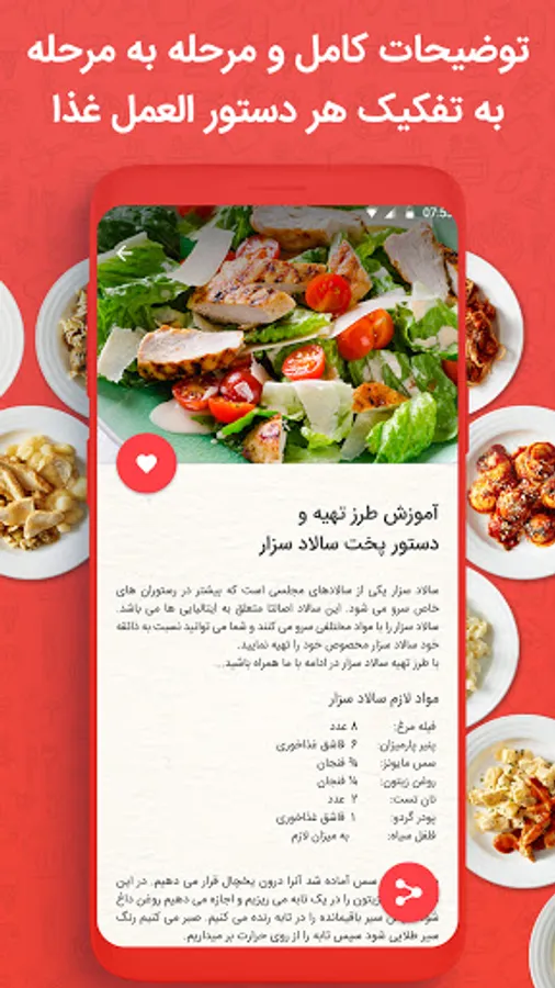 در برنامه کتاب آشپزی و آموزش آشپزی سعی شده غذاهایی با مواد اولیه بسیار سالم و باب طبع ذائقه ایرانی و با سریع ترین و ساده ترین روشها آموزش داده شوند. پس لذت آموزش آشپزی را با کتاب کامل و جامع آشپزی ما تجربه کنید.