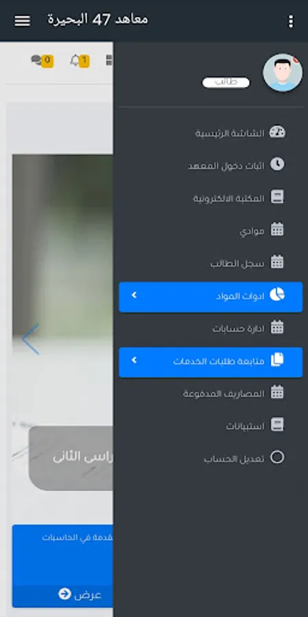 BHI47 is used to facilitate the educational process in the higher institutes of the lake in terms of linking the student, faculty and administration with each other in terms of letters, notices, raising lectures, tests and duties for students as well as the work of academic guidance for students