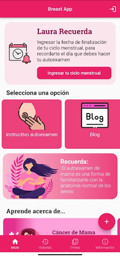 BreastApp is a mobile application to raise awareness about breast cancer in people linked to the Metropolitan Technological Institute of Medellín. Here you can find information about breast cancer and breast self-examination, and it also allows you to keep a record of breast self-examinations performed.