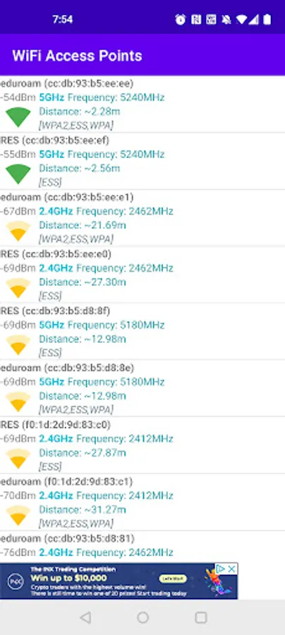 WiFi Access Points let you list details of nearby Access Points that you can not usually see from the WiFi icon on the navigation bar. You see signal strength, channel information, and much other helpful information and decide which access point you want to connect to. Particularly useful when you are outdoors and looking for a high-speed access point nearby.