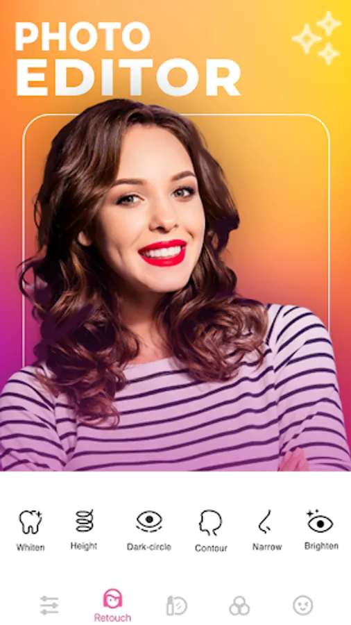 Photo Retouch: Selfie editor Select from an array of beauty camera editing tools to improve the look of your photos