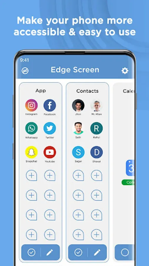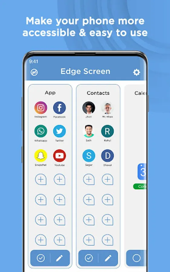 Do you like easily accessible shortcuts? If your answer is yes, then Edge Screen - Sidebar & Swipe Navigation Gesture app will help you. This app allows you to set the shortcuts for any app, contact, calendar, music player & calculator. The main feature of this app is, you will find all the shortcuts in one sidebar panel. You will access the sidebar by simply swiping on the screen. You can also change their position, style, color, symbol, etc. You can change the design of the toolbar, too. The shortcuts are customizable in one or two columns. The application is suitable for any android device. It is absolutely free and user-friendly. With this app, you can launch your favorite apps faster, call favorite contacts, play favorite music & more. Install this amazing application and save time.