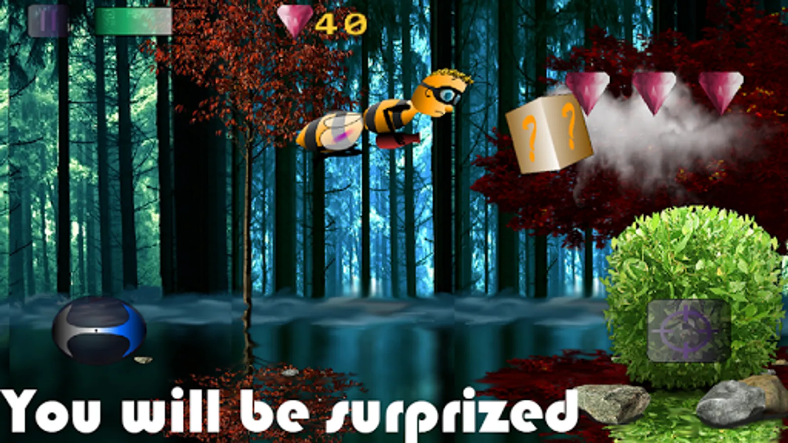 Explore the incredible world of the game, fight the evil monsters and predatory birds that come out at down and help the bumblebee find his way home.