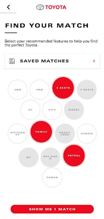 It could not be easier to find out more about the Toyota range. Reveal the complete Toyota models for you to select. If you are Interested in Hybrid or a 4x4. Then try the “find you match” feature, which will lead you to the perfect match of your choice.
