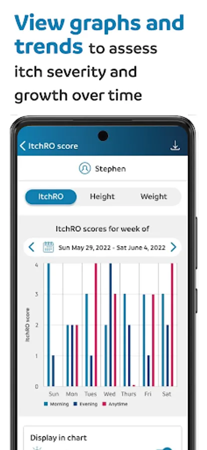 • Detailed charts: See your child’s itch severity and growth patterns against standard percentiles