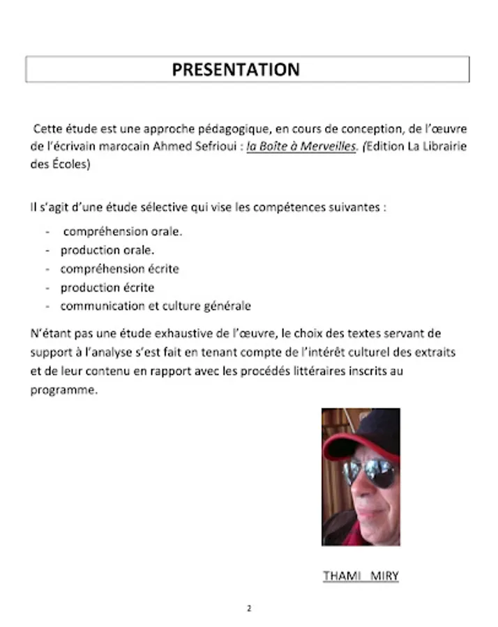 This study is an educational approach to the work of Moroccan writer Ahmed Sefrioui: "La Boîte à Merveilles". (Edition La Librairie des Ecoles)