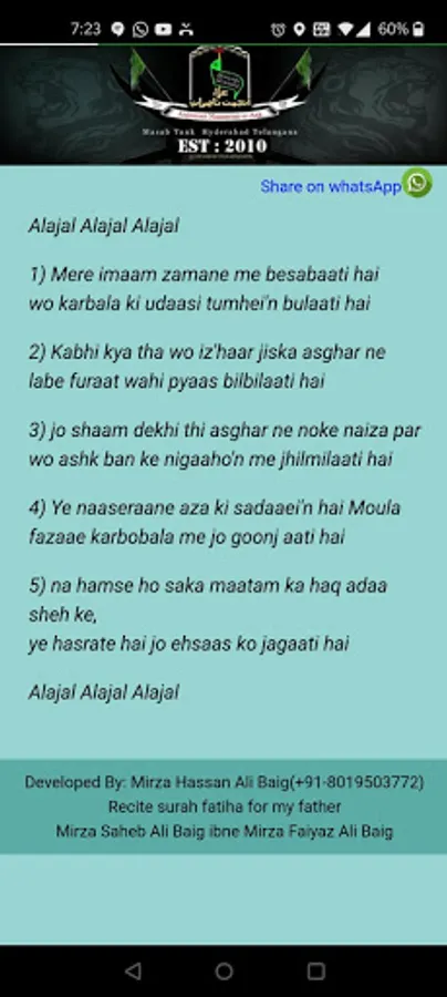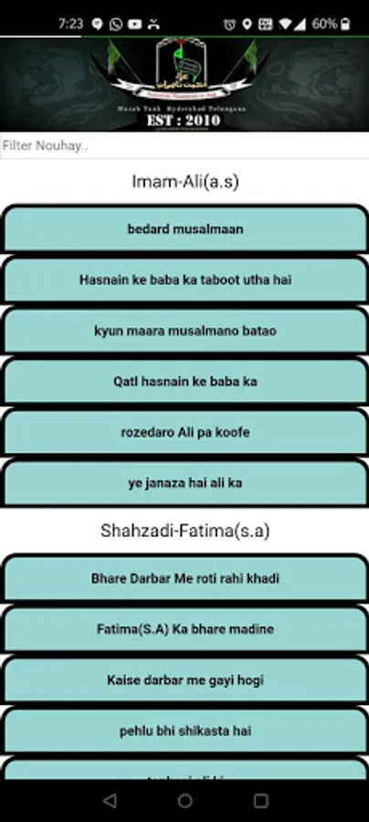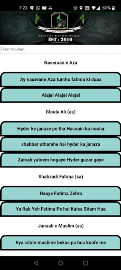 Contains Nouha Lyrics of Anjuman e Naseeraan e Aza