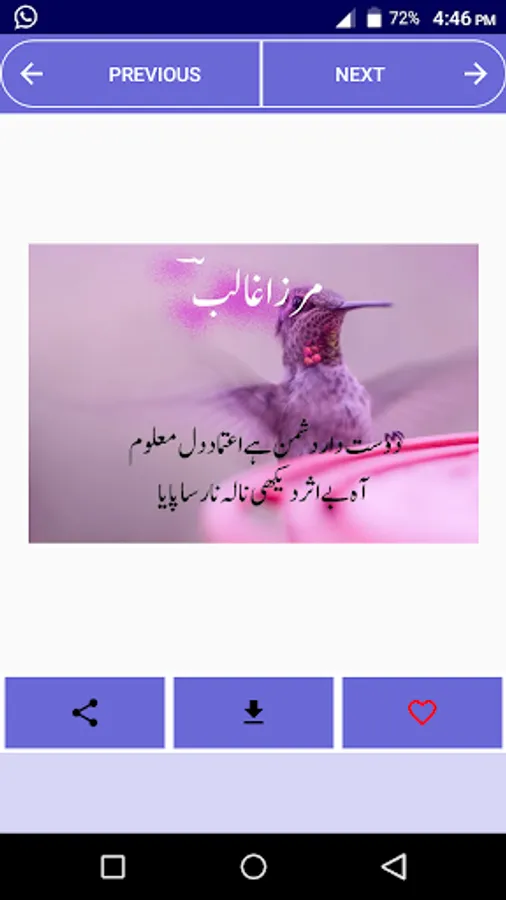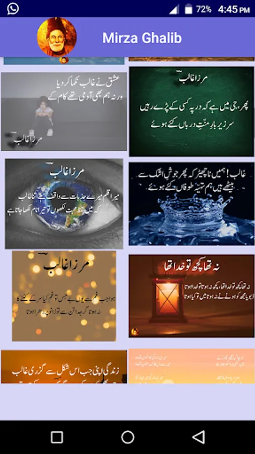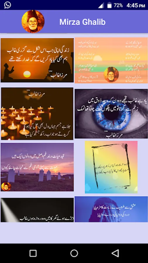 In this app you can read a huge poetry of Mirza Ghalib . It is worth reading. This app has beautiful poetry with beautiful backgrounds. It is in Urdu. You can download, like and share poetry of Mirza Ghalib with your friends and family. Ghalib's shayari is very famous and its way of expressing his thoughts is very unique. Hope you like would like it.