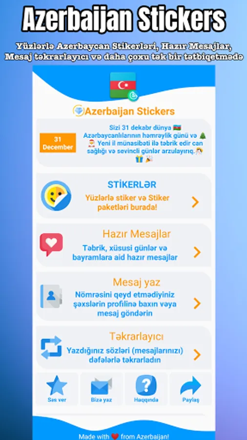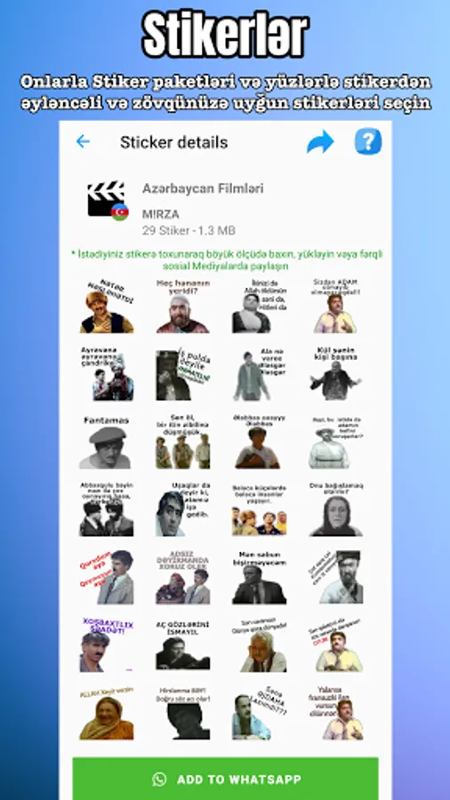 Free and most popular Azerbaijan Stickers for WhatsApp™ & Telegram™ and much more with one app