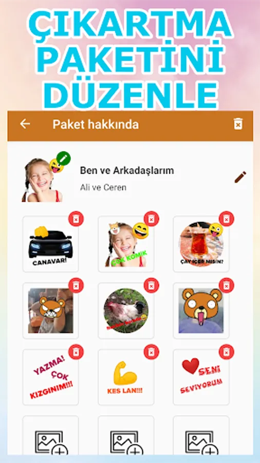 Yüzlerce çıkartmayı sizler için biraraya getirdik. Türkiye ve 7 Türk devletinin gelmiş ve geçmiş sevilen dizilerinin, aynı zamanda medyatik kişilerini toplayarak en eğlenceli çıkartmaları hazırladık.