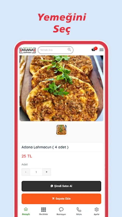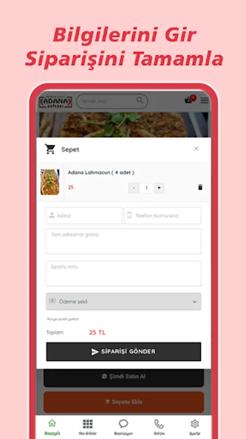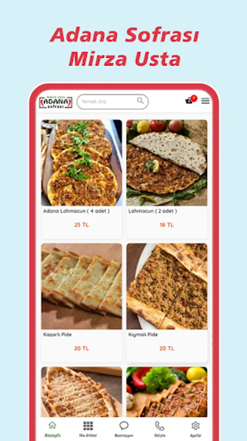 The mobile application of Adana Sofrası Mirza Usta Restaurant in Manavgat, you can add food to your basket and order quickly without becoming a member.