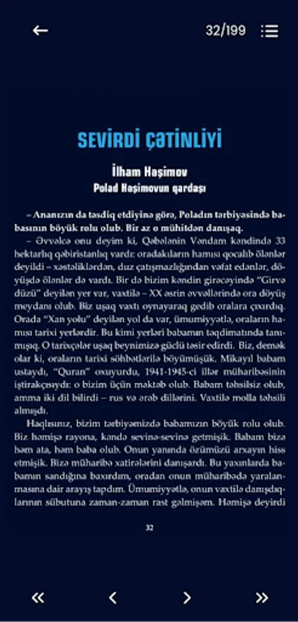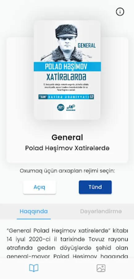 The application "Polad Hashimov in Memories" consists of memoirs about Major General Polad Hashimov, who was killed on July 14, 2020 in the battles around Tovuz region. The application includes memorabilia taken from the family members, relatives, officers and comrades of the martyred general. The section "Polad Hashimov in photos" contains photos taken at different times, from the childhood of the general to his separation from us. The application is intended for a wide readership and aims to introduce the martyred general to the public.
