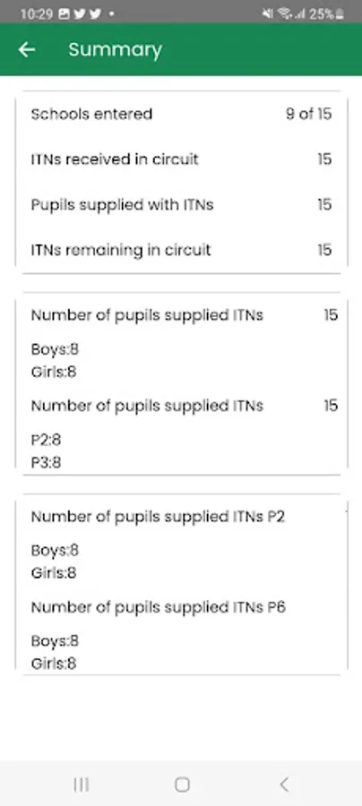 The Ghana Malaria Interventions System is an android mobile app used for the collection of data during the various malaria interventions(School distribution,SMC,Point Mass Distribution,Larviciding) implemented in Ghana