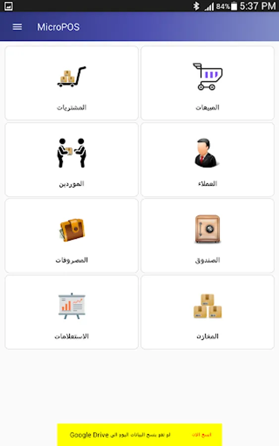 In this screen we define the system on the language in which we deal with, and then choose the currency and the parts of the currency and then write down the top of the bill text with the choice of the logo that Azhrva invoice and we can the size of the logo control as we can show a warning message in the event of lack of stock, we can also be allowed to sell on credit
