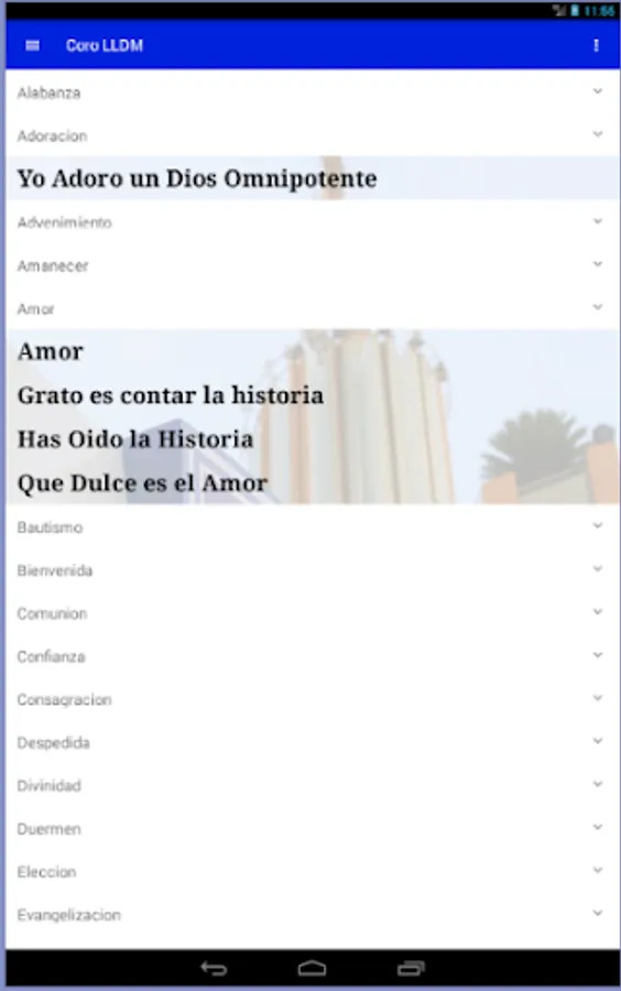 Coro LLDM currently contains 614 scores belonging to the international repertoire of Coro La Luz del Mundo. The scores are arranged alphabetically and by subject.