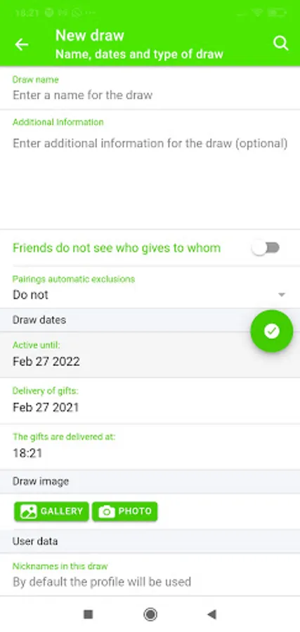 - The administrator can change the name and image of the raffle and the date of delivery of gifts.