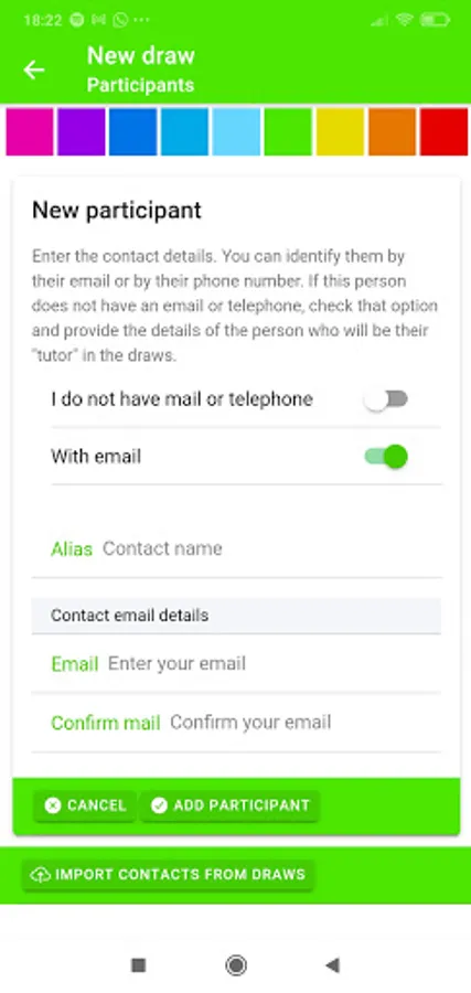 As you carry out raffles, the participants are saved in your agenda so that for subsequent raffles you simply have to select them from the agenda. In this way, the preparation of the draws is greatly simplified.