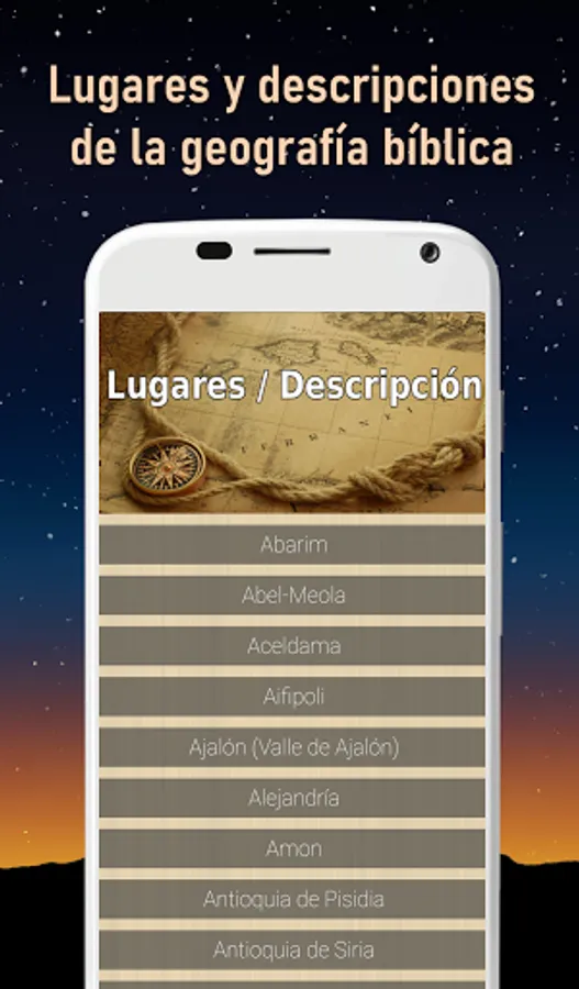 From "Places and descriptions" you will access all the locations listed in the Bible, so if you are reading it and want to know more specific information about Alexandria, Damascus, Bethlehem, Athens, Egypt or Galilee, for example, you will only have to open this utility and access its corresponding file.