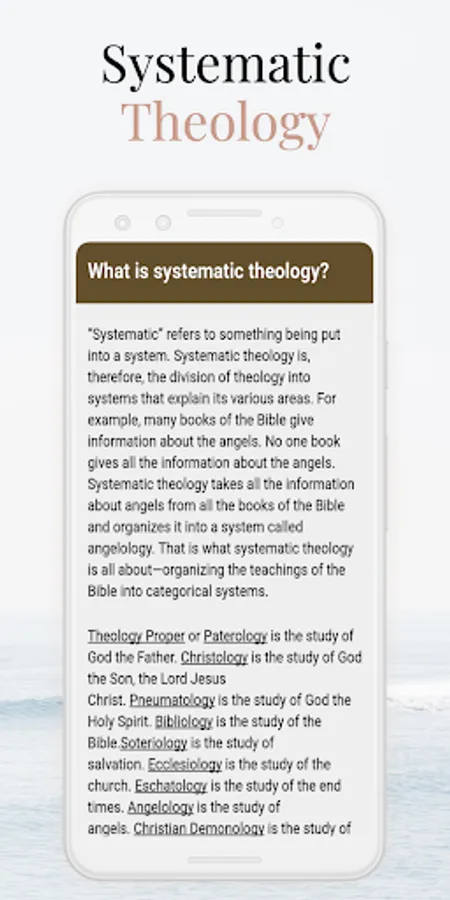 Systematic Biblical Theology is the division of theology under systems that explain its various areas . This tool helps you to organize all these categories, so we can read about what we want: sin, the nature of man, Christ, and so on.